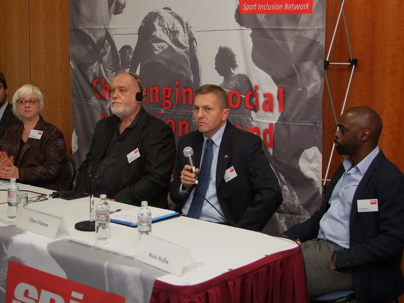 Bei der Konferenz an der Central European University diskutierten Expert_innen und Menschenrechts-Aktivist_innen die Förderung der Freiwilligenarbeit und die Stärkung der Selbstorganisation von Migrant_innen im Sport. Die Vertreterin des Europarats, Clarisse Bonjean, betonte die Verantwortung von großen Sportverbänden und der öffentlichen Hand bei der Unterstützung von Initiativen an der Basis. Tibor Vámos vom ungarischen Fußballverband MLSZ sprach sich für eine Null-Toleranz-Haltung beim Thema Rassismus aus.